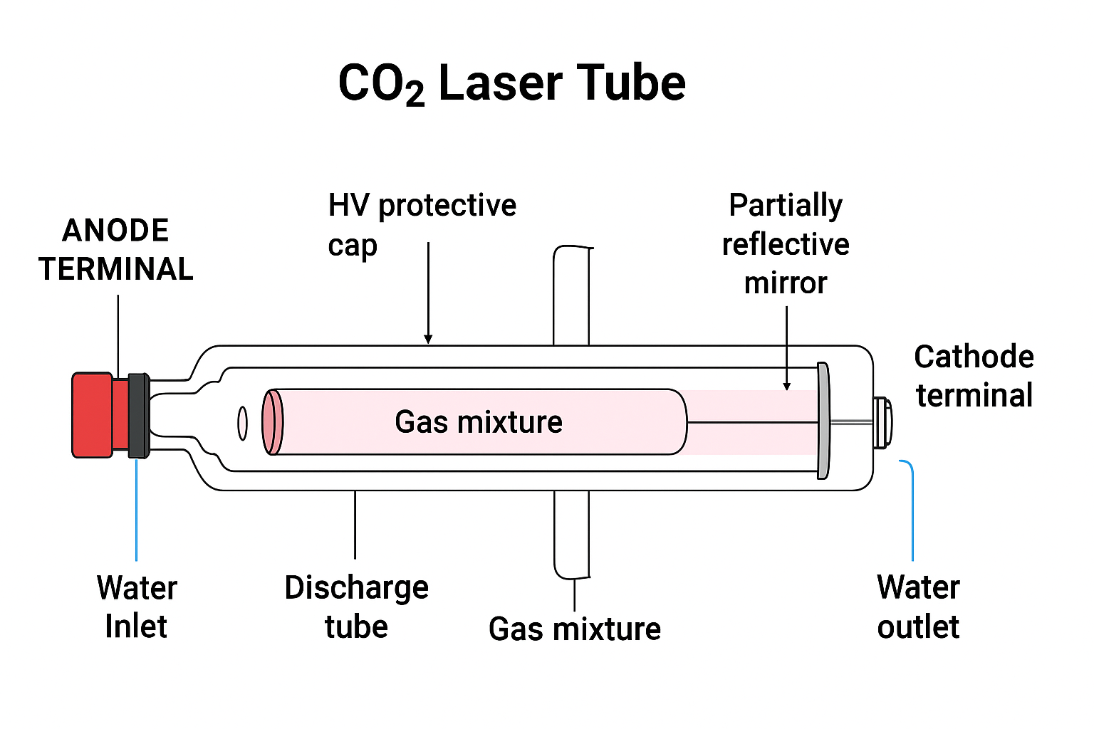 A CO₂ laser tube is made up of several critical components, each with a specific function in generating the laser beam: