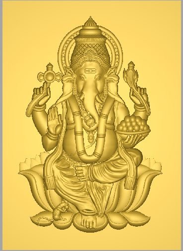 - High-resolution 3D relief design of Lord Ganesha.