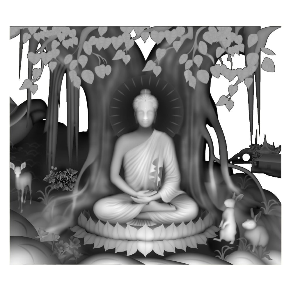 - High-resolution 3D relief representation of Gautam Buddha.