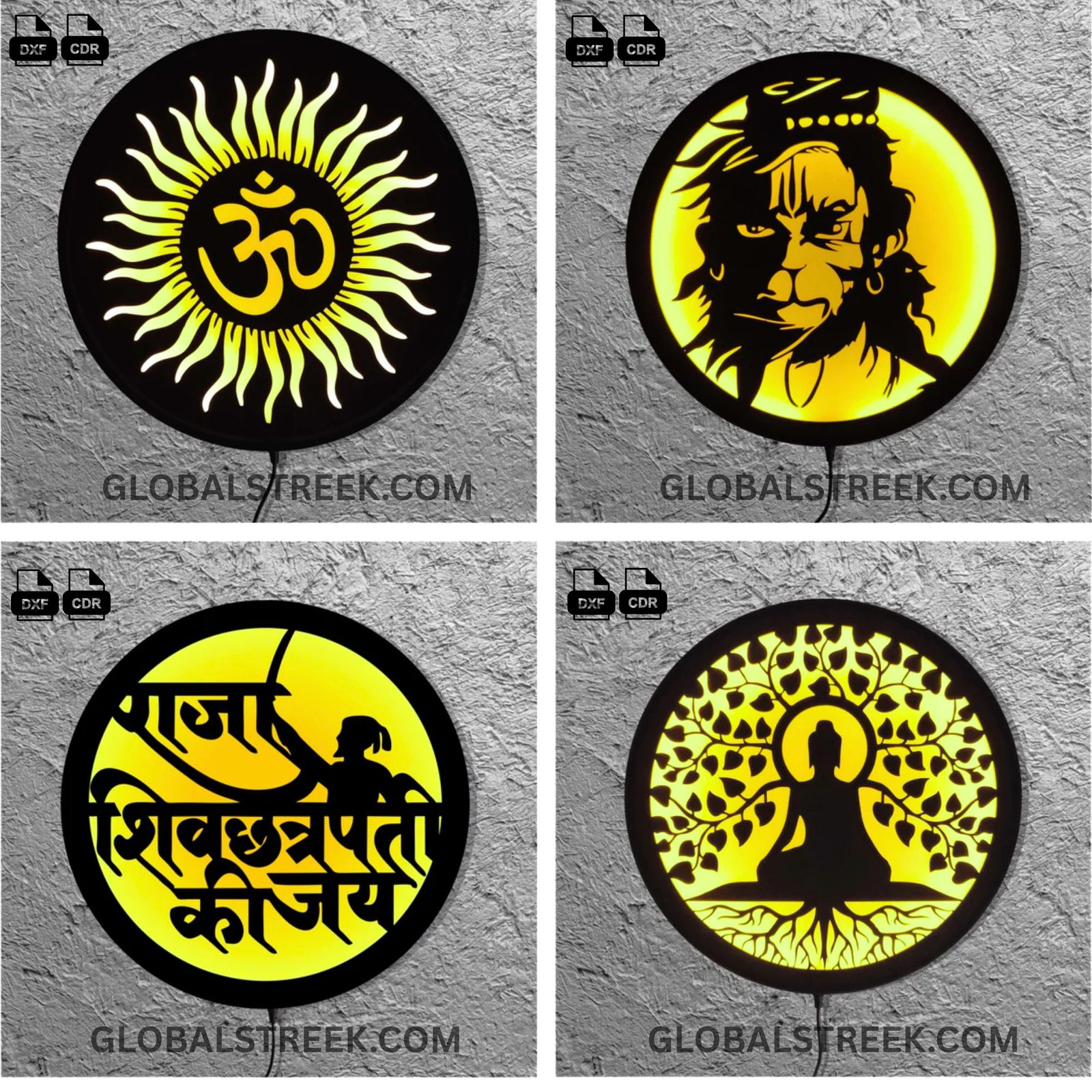 Download the 13 Premium LED Wall Hanging Designs Bundle today, cut with your laser machine, and start selling trending LED wall décor on eCommerce platforms with confidence.