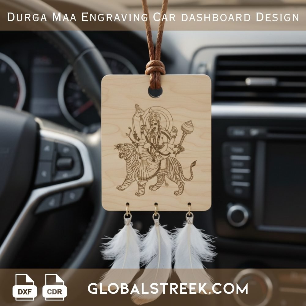 Download this powerful Durga Maa Engraving Car Dashboard Design DXF file and create a unique spiritual decor piece for your car. This design works perfectly for laser engraving and CNC machines, helping you produce clean and detailed results for dashboard decoration.