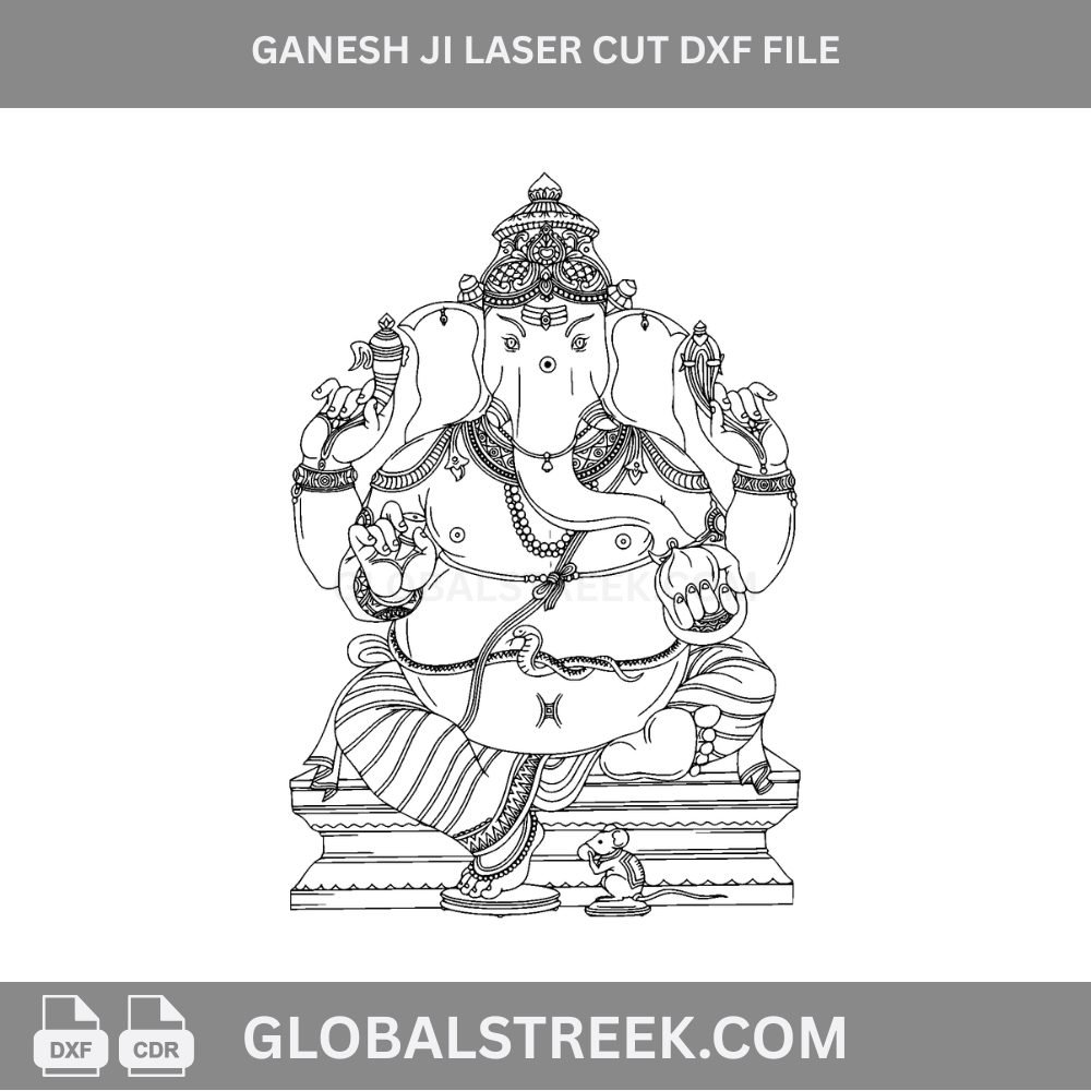 Ganesh Ji Laser Cut DXF File is a premium engraving vector design specially created for CNC and CO2 laser machines. This high-quality design is perfect for engraving on acrylic sheets, wooden MDF, and other materials to create beautiful and spiritual products.