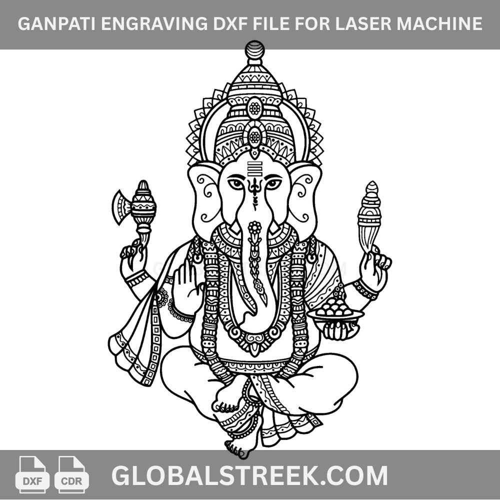 Ganpati Engraving DXF File for Laser Machine is a premium engraving vector design specially created for CNC and CO2 laser machines. This high-quality design is perfect for engraving on acrylic sheets, wooden MDF boards, and other materials to create beautiful and spiritual products.