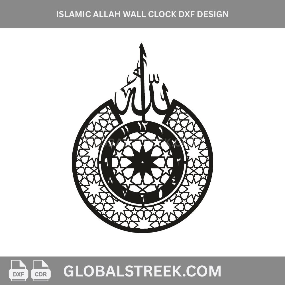 Download this Islamic Clock DXF file designed for laser cutting and CNC projects. This unique wall clock design features elegant Allah calligraphy at the top combined with a detailed geometric circular pattern. The layout creates a perfect balance between traditional Islamic art and modern decorative style.