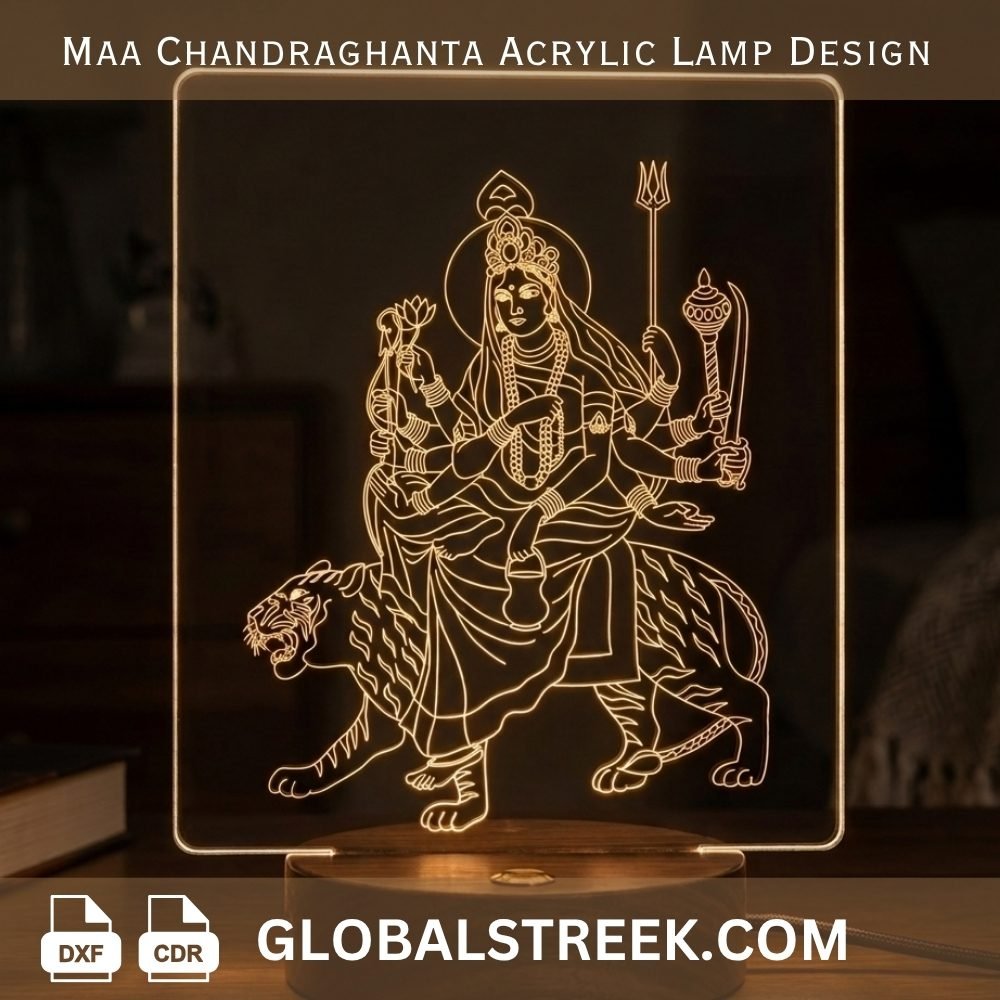 Download this beautiful Maa Chandraghanta Acrylic Lamp Design DXF file and create a powerful spiritual decor piece with ease. This design works perfectly for laser cutting and CNC machines, helping you produce high-quality acrylic LED lamps with clean and precise results.
