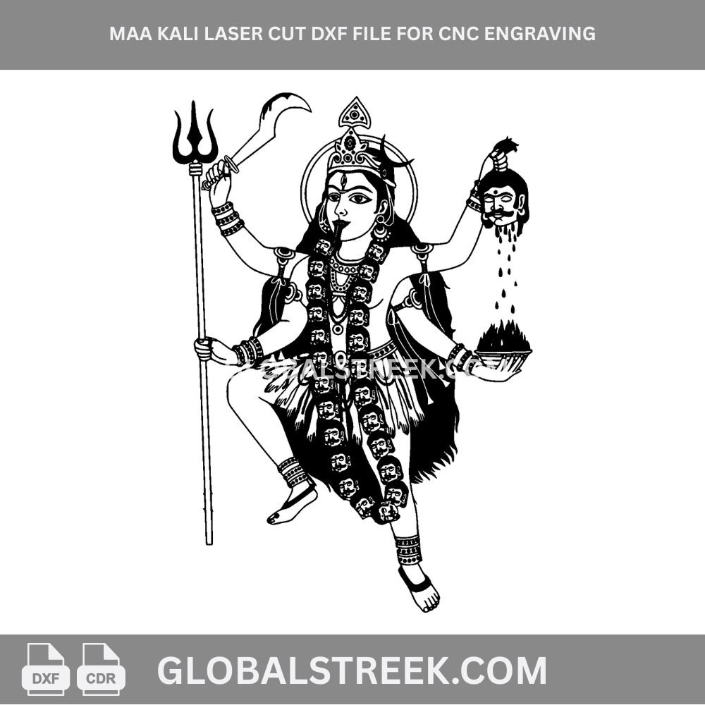 Download this powerful Maa Kali DXF vector file, designed for laser cutting, CNC machines, and engraving projects. This design represents Goddess Kali, symbolizing power, protection, and transformation, making it ideal for spiritual and decorative creations.