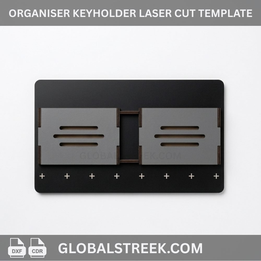 The Organiser Keyholder Laser Cut Template is a high-quality digital DXF file designed for CNC and laser cutting machines. This is not just a keyholder; it also works as a smart organiser that helps you store keys and small items neatly while enhancing your wall decor.