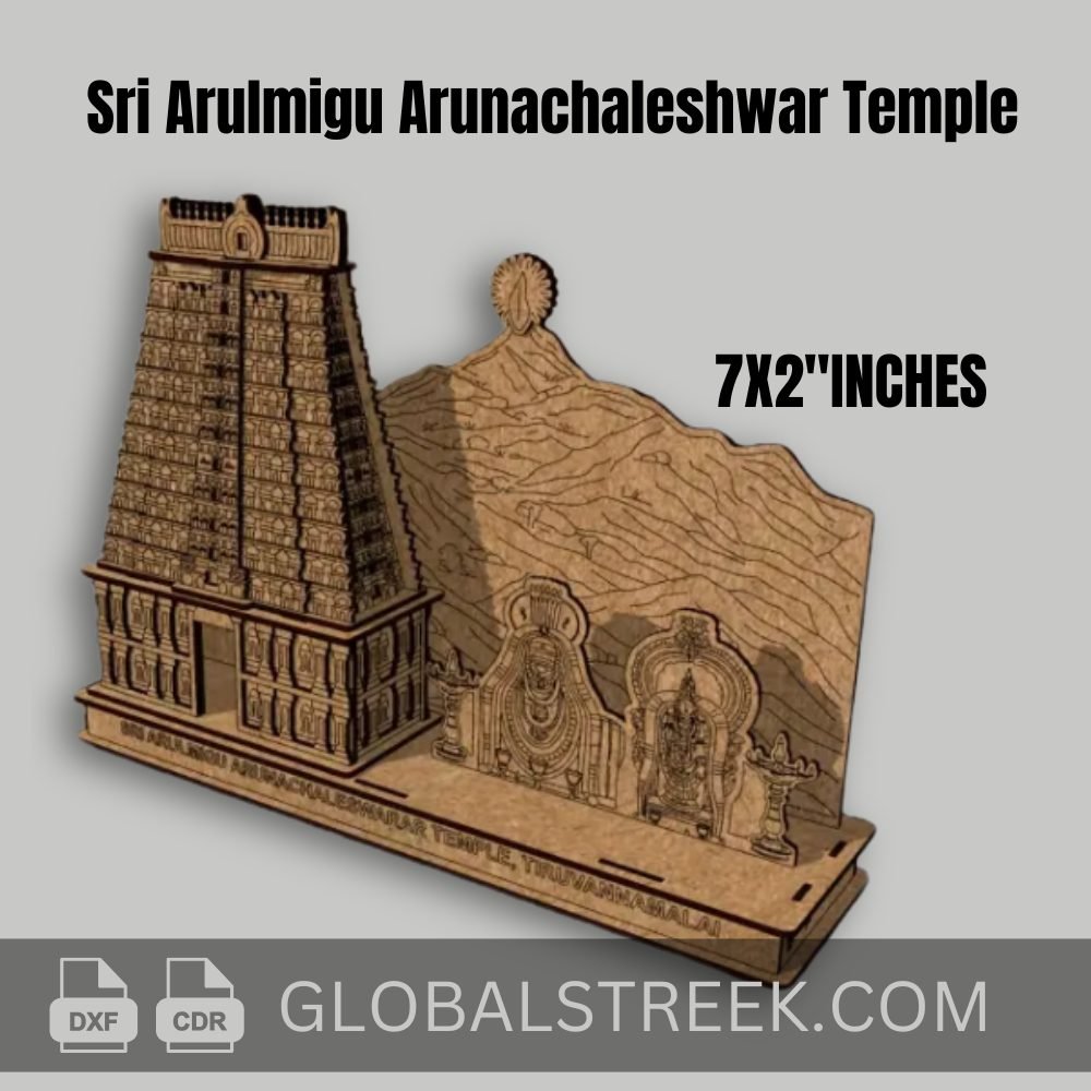 Download Sri Arulmigu Arunachaleshwar Temple Laser Cutting File designed for precision laser cutting, CNC routing, and engraving projects. This detailed architectural laser cutting design draws inspiration from the sacred Sri Arulmigu Arunachaleshwar Temple and the surrounding holy mountain, bringing divine Indian architecture into your creative work.