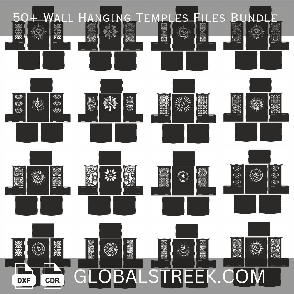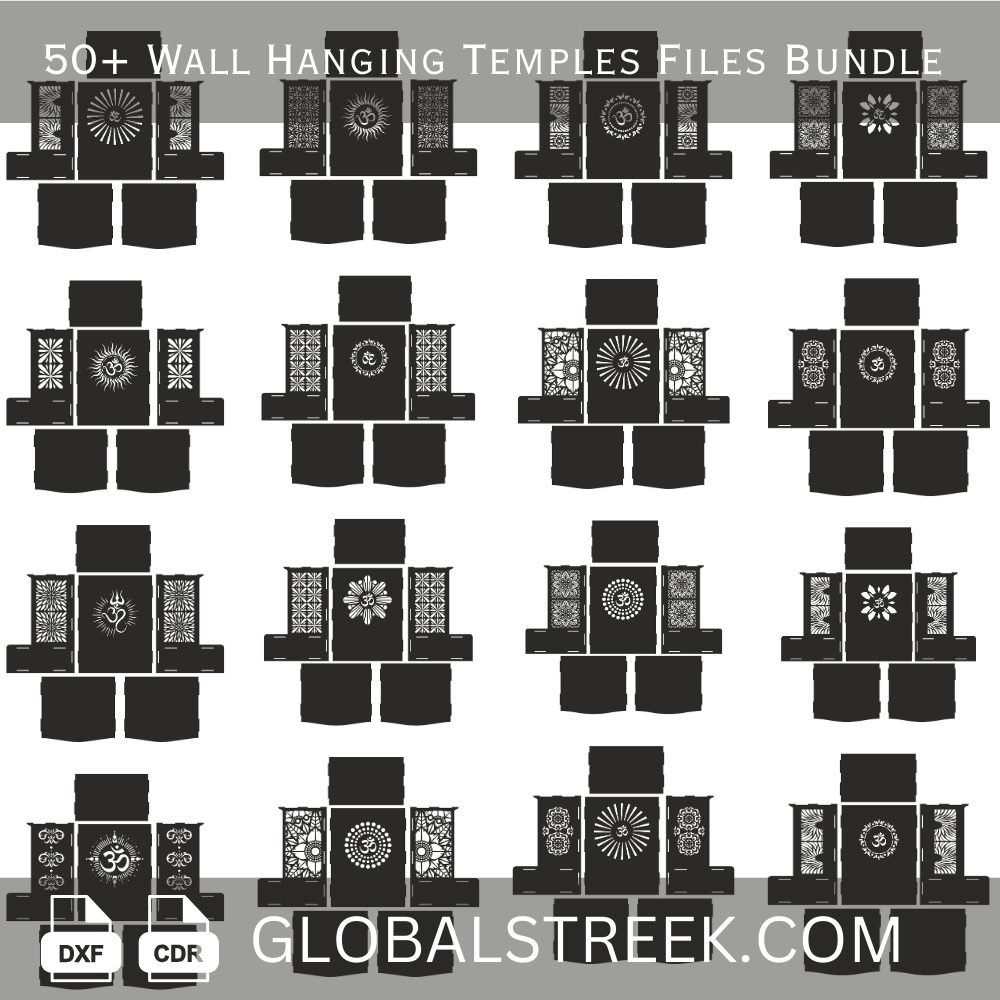 Download the wall hanging temple design file bundle featuring 50+ ready-to-cut temple designs specially created for laser cutting and CNC projects. This wall hanging temple design file collection includes detailed spiritual artwork that helps you create decorative temple wall hangings, pooja room decor, religious panels, and home decoration pieces with clean and professional results.