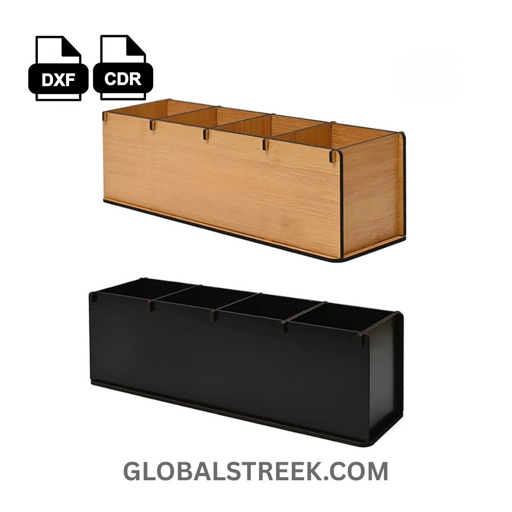 Wooden Desk Organizer Laser Cutting File – Multi-Compartment MDF Organizer DXF CDR