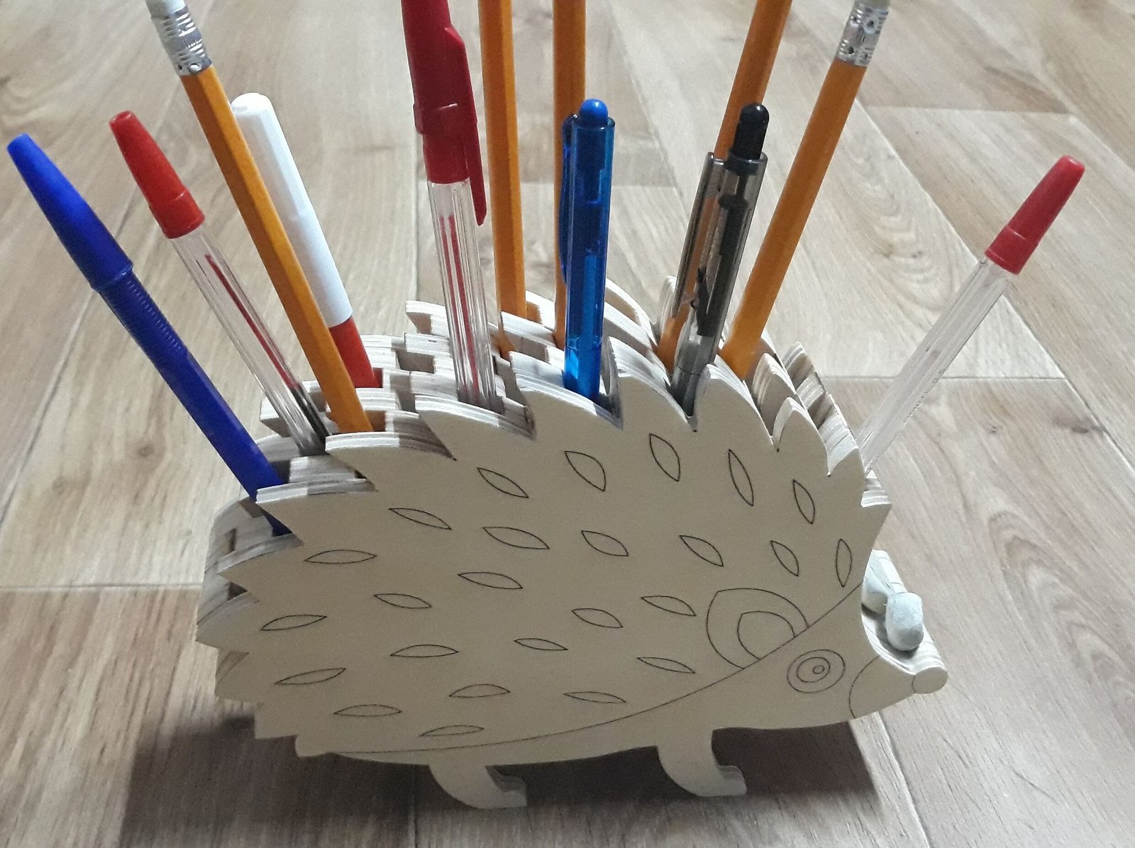 A fun and practical desk organizer that sparks creativity at your desk is the Hedgehog Pencil Holder, which comes laser cut. This wooden pencil holder laser cut file is designed into a cute hedgehog, ideal for kids, students, and even artists as well as for office decor. This free pencil holder PDF file can conveniently be used with CNC machines and laser cutters, allowing you to make a sturdy yet stylish pen stand from wood, MDF, or plywood. Whether for personal use, a handmade gift, or even selling custom wooden organizers, this CNC hedgehog desk organizer design CNC hedgehog desk organizer design will surely be a wonderful addition to any workspace. Download the laser cut pencil holder template today to add an adorable touch of charm to your desk organization.